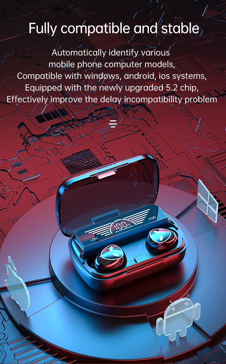 4.Intelligente touch control without compression (playback/pause, answer/hang up, switch songs, adjust volume,summon voice assistant)